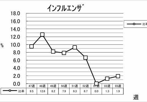 かくたクリニック感染症サーベイランス 院長コメント 03週(令和08年01月12日~令和08年01月18日) インフルエンザA型の流行は落ち着きました。インフルエンザB型、感染性胃腸炎(ノロウイルス)、新型コロナウイルス感染症が少し見られて...